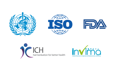 Adherencia a estándares internacionales como GMP, ISO, y regulaciones locales.